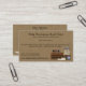 PRIMITIVE COUNTRY BUSINESS CARD on Kraft paper background. A stack of homespun fabric with sewing notions, mason jar filled with buttons and measuring tape in a pretty primitive colour palette. Card is two sided. Easily customise with your information. Please don't hesitate to message me through