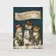 Primitive Christmas greeting card with a snowman reliaxing in the night sky with the snow flakes falling..