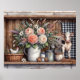 Primitive wood country shelf with florals.