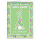 A pretty Easter Greeting Card for a Grandmother, with a cute Bunny Rabbit on a pale green background and a border of coloured primroses. Please feel free to personalise the