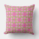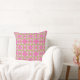 A chic Throw Pillow or Cushion, with a pretty faux-patchwork pattern of deep pink, violet blue and yellow primroses on a leafy green background, with deep pink and white check gingham and polka dots; from the Posh & Painterly "Primroses" collection. The check gingham pattern will fit all mug sizes.