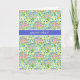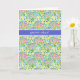 A pretty 'Get Well' Card with the greeting in Turkish and a pattern of deep pink, deep blue and yellow primroses, from a handpainted design by Judy Adamson.