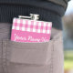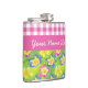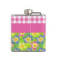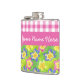 A pretty Hip Flask for you to personalise, with a pattern of pink, yellow and blue Primroses, teamed with matching pink band where you can add text if you wish; part of the Posh & Painterly 'Primroses' collection.