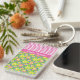 A pretty, rectangular Keychain for you to personalise, with a pattern of pink, yellow and blue Primroses, teamed with matching pink band where you can add text if you wish; part of the Posh & Painterly 'Primroses' collection.