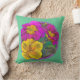 Delicate floral pink and yellow artwork printed green throw pillow is perfect to embellish an interior room and to give it a ping of spring colour.