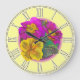 Delicate floral purple and yellow fine art printed botanical wall clock is perfect to embellish an interior room and to give it a ping of spring colour. Add a little tranquillity to a bedroom, lounge, or sun room with this original fine art wall clock.