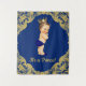 Prince baby shower backdrop with adorable baby prince on a beautiful royal blue and gold background. This elegant prince baby shower backdrop is easily customised with the text of your choice. You can move the baby as needed.