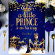 Magical Horse a Carriage Little Prince Boy Baby Shower, Royal blue and Damask Faux Ornate Gold for a baby boy. A Little Prince Is on His Way. Gold Crown. With a gold trim. Pretty vintage cute couples baby shower. Baby Shower. Faux Gold Foil Baby Shower
