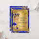 Gold and Royal Blue Boy Baby Shower it's a boy Party Invitation. Elegant gold diamond floral design with cute baby boy and crown. Brunette Prince Boy Baby Shower