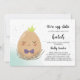 For the Mum-to-be of a little hatchling, choose this modern easter themed baby shower invitation. Decorated a with an adorable smiling tan egg illustration sitting in a nest with a crown upon his head and a purple bow tie. Invitation features the phrases "We're egg-static", " A little one is about to hatch". Personalise with your baby shower details beneath. The backside of these invitations features a matching mint and white polka dot background. Great for a boy baby shower.
