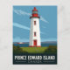 Send a beautiful piece of Canadian Maritime charm with this postcard! Inspired by classic mid-century travel posters, this illustration captures the tranquil beauty of Prince Edward Island (PEI). The design features a tall, iconic red and white lighthouse standing proudly over the grassy coast, with a ship sailing in the calm waters beyond. The simple, bold graphic style perfectly evokes the nostalgia of classic travel art.