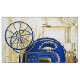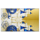 Prince photo booth backdrop with royal blue and gold castle and fancy royal blue and gold royal carriage on a gold background. You can add text to personalise this prince banner background for your event. This beautiful royal blue prince photo backdrop is perfect for a prince birthday party and prince baby shower.