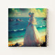 A gorgeous scene of a prince onlooking as his princess enjoys the shoreline on a cloudy day