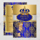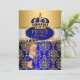 Royal Blue Gold Boy baby shower invitation. Blonde Boy Prince Baby Shower. Elegant gold damask & jewel crown.