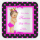 Princess Baby Shower Girl Hot Pink Brunette Square Sticker