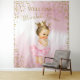 Princess baby shower banner backdrop with adorable brunette princess with cute pink tutu and pearls on a pretty pink and gold glitter background. This beautiful princess backdrop banner is easily customised with the text of your choice. You can remove the pink background and add the colour of your choice. You can also change the size as needed.