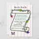 A young girl's delight is a Princess birthday party and these lovely party invitations fit perfectly with the theme. Pale pink and white striped background and a paper looking scroll decorated with vines and butterflies is ready for you to customise for your little princesses birthday party. Adorable invitation sure to please Her Royal Highness.