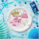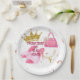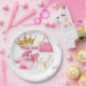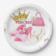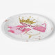Princess birthday party paper plate for Christian events. Celebrate your child's annual salvation decision to follow Jesus. Partyware theme, "Princess Of The King" with pink princess shoes, gold crown, pink purse and cross necklace. Perfect for family or church events, VBS and Sunday school.
