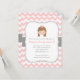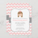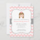 A picture of a little princess with her tiny crown with classy and elegant pink and white chevron pattern background. Grey outline banner with white centre for indicating party details. This simple invitation card with its pink, white and grey palette and princess theme is ideal for anyone who is planning a birthday party for their precious little girls. Invitation card can be easily personalised with your party details.