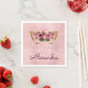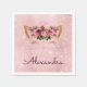 Girly Blush Pink and Burgundy Princess Monogram Sparkle Kitty Birthday Party Napkins for a Cat or Kitten Baby Shower. The monogrammed name can be updated on the Birthday or  Baby Shower Sparkle Napkins. The Kitty is on a sparkle blush pink or rose gold background with a princess crown with floral roses.