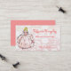 Very pretty pastel peach and white, on this girl's calling card, with a lovely princess in a pink dress and crown. The cute coloured text is fully customisable for your child and adds the right touch to this beautiful calling card / enclosure card.