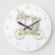 A cute clock in gold and pearl colours. Gold numbers, In the centre is a a beautiful carriage and crown