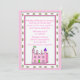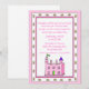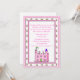 Pretty girl's Princess birthday party invitation. Sweet graphics of a pink cartoon castle decorates the bottom, and a lovely pink and green floral border around the edges of the invitation. Text in pink is ready to personalise for your little Princess's special day.