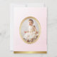 Sweet little princess with her crown and carriage in front of her castle. Done in pink & gold. Use for birthdays, baby showers or announcements. Place for your photo on the back.