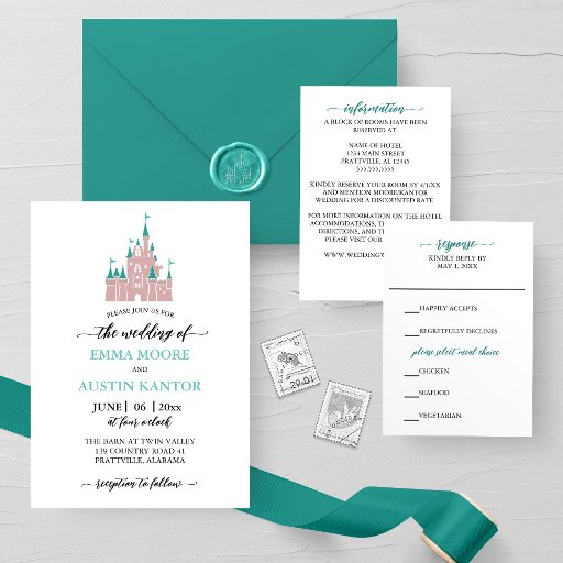 Step into a whimsical world with our enchanting Princess Castle Wedding Invitation. This elegant design features a stunning princess castle at the top, beautifully paired with modern calligraphy and classic fonts to create a sophisticated and timeless look that will make your wedding invitation stand out. Perfect for fairy-tale enthusiasts and those who want to add a touch of romance to their special day, this invitation is sure to delight your loved ones and set the tone for a magical celebration.