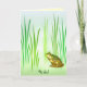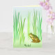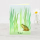 This sister friendship card features a small female green frog with a yellow belly sitting among the grasses at the pond. She seems lonely as if she is waiting for her Prince Charming to appear. More grass decorates the inside. The text reads: Hi Sis. Just thinking of you. It can be customised to suit your needs.