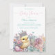 Girl Easter baby shower invitations with princess chick with eggs, flowers and butterflies. This sweet little chick baby shower invitation is easily customised with your text and you can change the background colour.