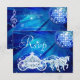 Womens' personalised, elegant custom RSVP cards. Beautiful blue double sided woman's rsvp cards with a funky retro disco mirror ball and glamourous printed image rhinestone glitter, sequins bling jewels sparkle royal Princess carriage / coach with crown / tiara and horses on a vibrant royal blue and white lights and sparkles background. There is a beautiful music musical note and high heels stiletto shoe / fairytale glass slipper on the reverse of the cards. Magical, chic, classy, cute, girly, modern rsvp's with trendy, fashionable colours. These groovy, stylish, sophisticated, pretty birthday rsvp cards are decorated / printed on both sides. Perfect rsvp cards for a dinner dance dancing event or any lavish, luxury affair. PLEASE NOTE: All products on Zazzle have flat printed images. If you need any assistance customising your product please contact me through my store and I will be happy to help.