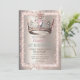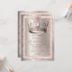 This first birthday invitation with princess crown and glitter frame on ivory background.