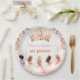 Princess Crown Pink Gold Floral Girl Birthday Paper Plate