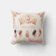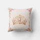 Princess throw pillow adorned with a pink and golden crown, delicate flowers, and adorable little princesses in pastel dresses. The roses and crown on the back side. Easily personalise the text. - Kate Eden Art