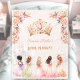 Princess fleece blanket adorned with a pink and golden crown, delicate flowers, and adorable little princesses in pastel dresses. Easily personalise the text. - Kate Eden Art