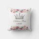 A vintage crown and beautiful pink, pastel golden pink and mauve watercolor roses make a lovely princess themed floral nursery throw pillow ready to customise with baby's name and date, or any message of your choice.