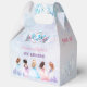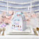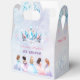 Princess Birthday party large favour boxes adorned with a crown, delicate flowers, and adorable little princesses in pastel dresses, winter edition. You can choose from 3 sizes of these gable favour boxes. Easily personalise the text. Perfect for any Birthday of a little girl in the wintertime. - Kate Eden Art