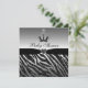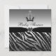 Glamourous black and silver personalizable neutral Baby Shower invitations for girls or boys. Elegant and stylish custom printed zebra animal stripes glitter look invitations with a beautiful printed Princess / Prince crown with diamonds and black jewels and a cute printed girly heart jewel and pretty printed ribbon on a platinum silver glamour gradient background. These stylish, sophisticated fashionable invites are decorated both sides. Trendy, chic, classy, modern fashion invitations. PLEASE NOTE: All products on Zazzle have flat printed images. Text, font and colour of font are all personalisable.. If you need assistance customising your product please contact me through my store and I will be happy to help.