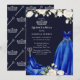 Elegant quinceanera invitation with royal blue princess dress and white roses. The design is complete with high heel shoes, tiara and sceptre and has a colour palette of midnight blue, royal blue, silver and creamy white. Chic and feminine mis quince invitation for your 15th birthday celebration. Coordinating stationery and party decor is available in my Princess Dress and Roses Quinceanera Collection but please message me if you need me to add any other items.
