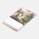 Envision an enchanting landscape of undulating hills and glistening rivers, where a young woman dressed in a flowing white gown akin to a princess gazes upon a stunning vista with an enchanting castle afar. A border of soft earth tone waves beneath her. These post it notes will inspire romantics.