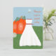 Get carried away with this fun princess style, fairy tale wedding invitation. The front features a painting of a pretty pumpkin carriage with white wheels and frosty looking leaves. A soft light awaits inside. A pretty white wedding gown accented with bubbly red ribbon is topped with a glowing crown. The text is ready for your own personalisation. There are matching items in this store. Do let me know if you'd like this design added to any other products.