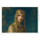 Princess of Troy with long braids wearing a jewelled crown. On a table by her hand is a golden goblet. Vintage Arthurian inspired fine art painting.