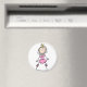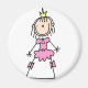 A stick figure in a pink ball gown on a customisable royalty theme stick figure magnet.