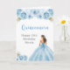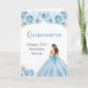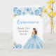 This Quinceanera birthday card features a beautiful princess in a blue ball gown with floral arrangements. This is perfect for a Quinceanera birthday party.