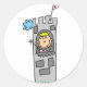 An adorable little stick figure princess waves from the castle tower on these cute stick figure customisable stickers.