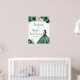 This sweet sixteen welcome sign features a beautiful princess in a dark green ball gown with floral arrangements. This is perfect for a sweet sixteen birthday party.