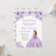 This sweet sixteen invitation features a beautiful princess in a dusty purple ball gown with floral arrangements. This is perfect for a sweet sixteen birthday party.