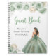 This sweet sixteen guest book features a beautiful princess in a sage green ball gown with floral arrangements. This is perfect for a sweet sixteen birthday party.