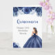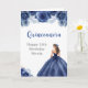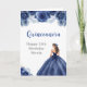 This quinceanera birthday card features a beautiful princess in a navy blue ball gown with floral arrangements. This is perfect for a quinceanera birthday party.